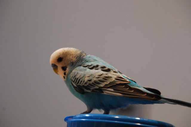 トレイのお掃除中はちいのすけが羽ばたいたら